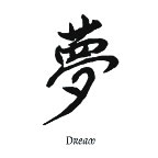 Removable tattoo of Chinese writing with English subtitle 'Dream'