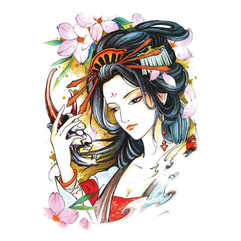 Cover your entire back with Geisha, a pretty woman in ancient times