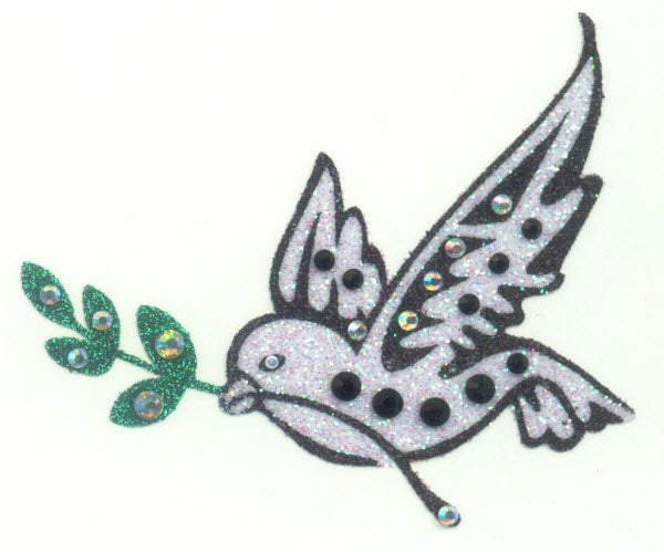 Bird with branch in its beak and gems body jewel stickers (6x5 cm).