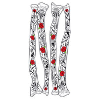 Arm bones with glitter roses and spider web design temporary tattoo. Inspired by the Mexican Día de los Muertos (Day Of The Dead).