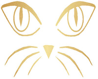 Golden cat face temporary tattoo with whiskers and eyes.