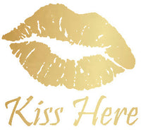 Show your lover the way with this golden "Kiss here" lips temporary tattoo.