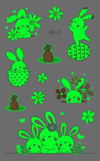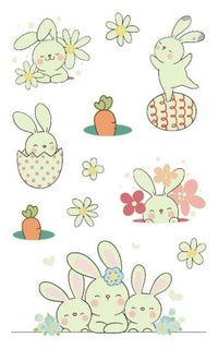 You can use these cheerful Easter bunnies in many different ways. You can use them as a tattoo on your skin, but also on tableware, eggs,... to brighten up your Easter decorations.