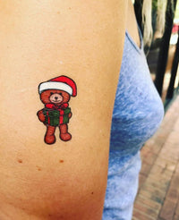 X-mas themed temporary tattoo assortment with Santa Claus, a snowman and a Christmas teddy bear.