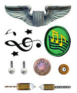 Skyn Demure male body decoration temporary tattoos: buttons, sol key, music notes, badges, wing, bullets,...