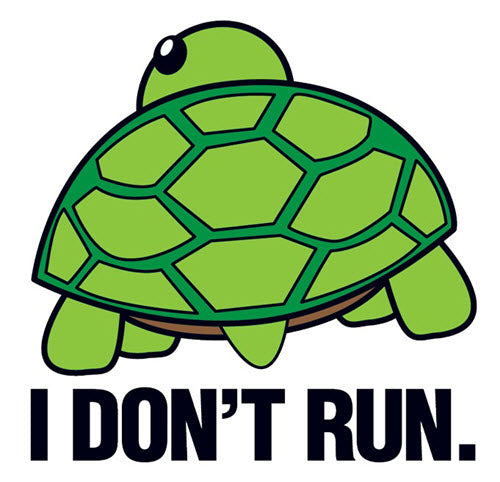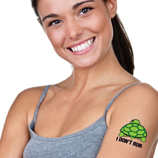 I Don't Run sports temporary tattoo with a turtle and the text "I Don't Run".