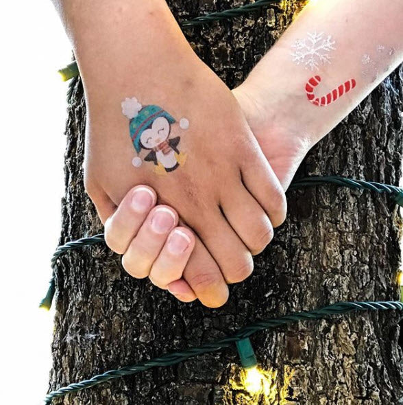 Jolly Penguin, a happy penguin with hat and scarf temporary tattoo