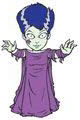Get in the Halloween trance with a Morticia temporary tattoo. Featured here in a zombie-like walk, her purple dress has shredded mummy-like arms.
