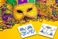 This glitter face temporary tattoo is a must for every Mardi Gras themed party!