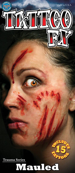 Mauled Trauma Tinsley Transfers temporary tattoos look like real skin abrasions!