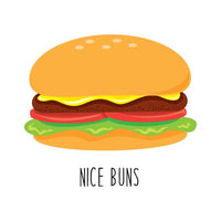 Nice Buns, a temporary tattoo with a hamburger and the words 'nice bun'.