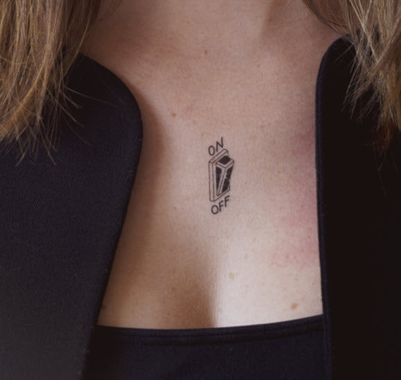 Ultra-cool On-Off temporary tattoo, a switch with the words ON and OFF.