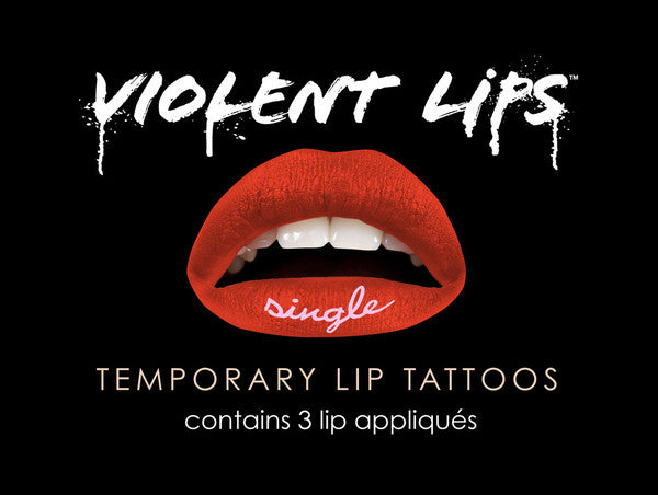 3 Sets of Orange Single Violent Lips tattoos with the text 'Single'
