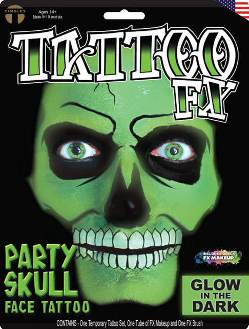 Party Skull Face Tattoo Kit - Glow in the Dark