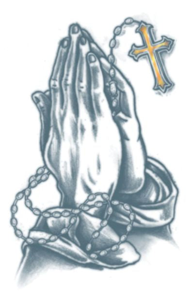 Praying hands with cross Tinsley Transfers temporary tattoo