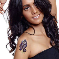 Adorn your skin with this charming temporary tattoo of a branch of purple orchids.