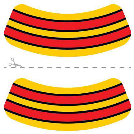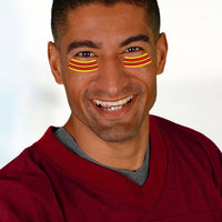 2 Red, yellow and black Eye Black temporary tattoos. Eye Black temporary tattoos are temporary tattoos applied under the eyes to reduce glare. And you will look more dangerous to your opponent! When you wear eye black as a team, it will add to the team spirit and make you invincible.