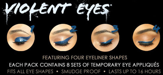 8 Sets of Smokey Metal Glitteratti Violent Eyes tattoos (contains 16 temporary eye appliqués).