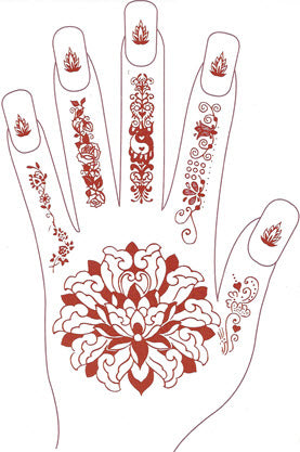 Henna style temporary tattoo Teej for the left hand (and the nails).