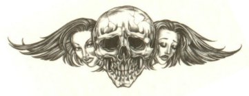 Small but beautiful temporary tattoo of a skull with two faces of women. The hair of the women forms the shape of a wing.