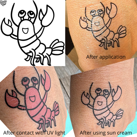 Diga olá ao acessório mais inteligente (e mais giro) do verão! As nossas tatuagens temporárias anti-queimadura ficam vermelhas quando expostas à luz UV, lembrando-o de forma divertida de aplicar protetor solar. Basta uma passagem de SPF e elas voltam à sua cor original.
