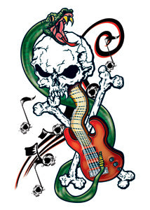 Tatuagem temporária de uma guitarra escorregadia com caveira e cobra