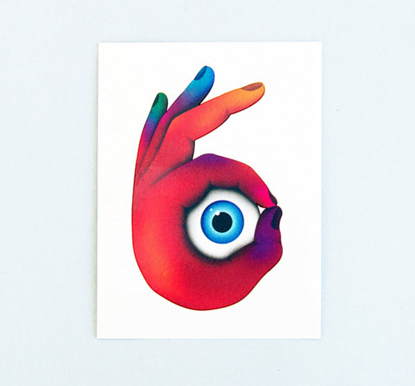Um olho e uma mã colorida a acenar a Holi, o Ano Novo Hindu.