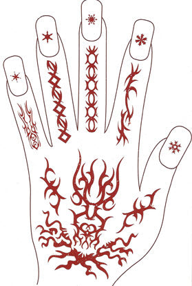 Tatuagem temporária estilo Henna Baraka para a mã esquerda (e unhas).
