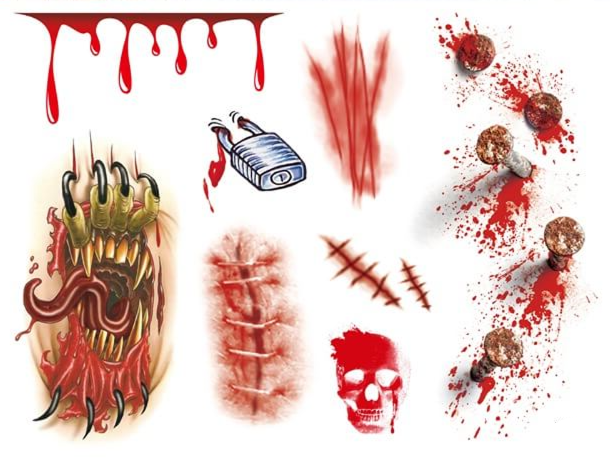 Com este conjunto de garras e pregos tatuagens de halloween. Uma forma ideal de entrar rapidamente no espírito do Dia das Bruxas. Pode usá-las no maxilar, peito, mão, costas ou braço. 16 x 12cm