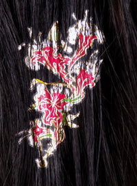 Tatuagens de Cabelo têm uma diferente cola do que as nossas tatuagens em folhas de alumínio douradas e prateadas. A tatuagem de cabelo sã especificamente para fazer em cabelo só. Se desejar tatuagem em folha de alumínio temporárias, para o corpo. Veja a nossa