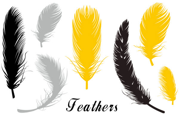 Tatuagens temporárias folha metálicas Penas douradas, prateadas & pretas.