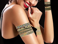 Conjunto de bonitas tatuagens temporárias chamativas de ouro de folha