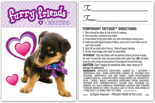 Tatuagem temporária de cartã de Dia de S. Valentim de Furry Friends (Amigos Peludos)