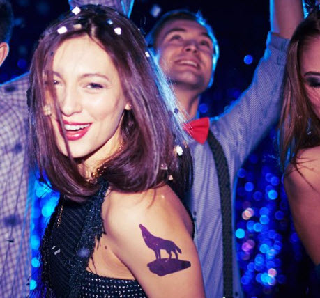 Para a sua próxima aventura na discoteca, esta tatuagem temporária de lobo a uivar é perfeita para usar se você estiver a exibir mais pele.