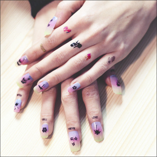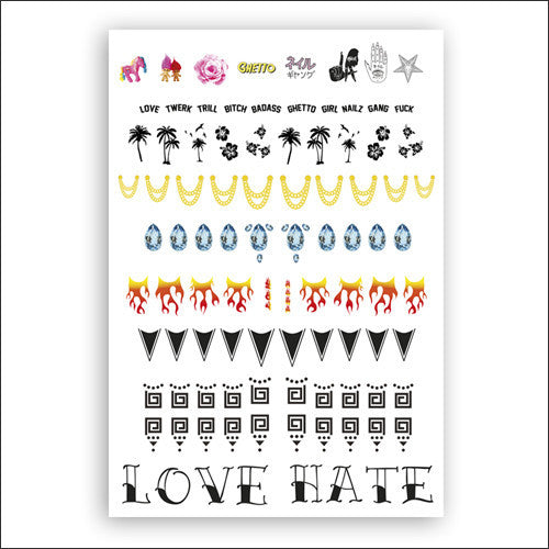 Conjunto Unhas Ghetto, 2 folhas com mais de 100 tatuagens para as mãs e unhas por Tatuagens Temporárias Premium Tattoonie.
