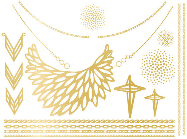 Tatuagens temporárias de correntes de ouro, cruzes e pontos