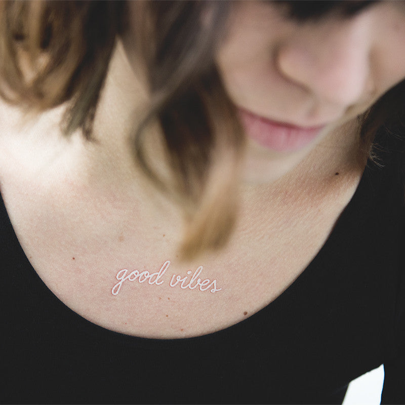 Boas Vibrações por Tatuagens Temporárias Premium Tattoonie.