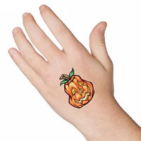 Tatuagem temporária feliz halloween de abóbora laranja a sorrir