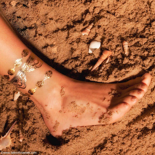 Tatuagens temporárias metálicas Henna feijões dourados & prateados.