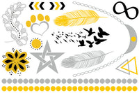 Tatuagens temporárias folha metálicas Ibiza douradas & prateadas.