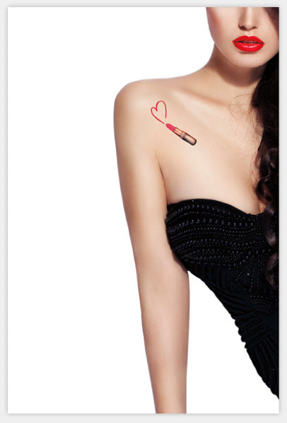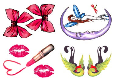 Laços vermelhos, lábios de batom, fada na lua e dois pássaros bonitos mini tinta temporária por Skyn Demure.