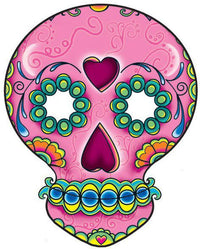 Prepare-se para celebrar o estilo fiesta Dia de Los Muertos! Este crânio rosa é cheio de cores ousadas e bonito com seus detalhes. Use esta tatuagem temporária em seu braço ou bochecha para algum divertimento adicionado a este dia!