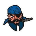 Tatuagem temporária de um pirata com pala no olho com uma faca na sua boca