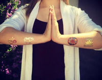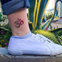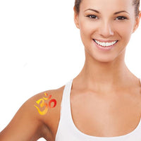 Esta tatuagem temporária Prismfoil chamativa de Ohm é extra especial com as suas brilhantes cores amarelo e laranja metálicas quentes.