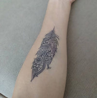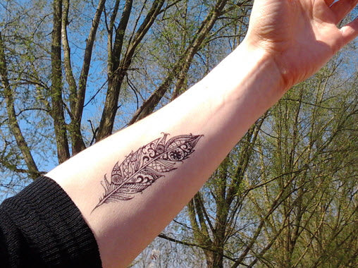 Tatuagem de pena desenho muito subtil: Strepik Panache pena tatuagem temporária.