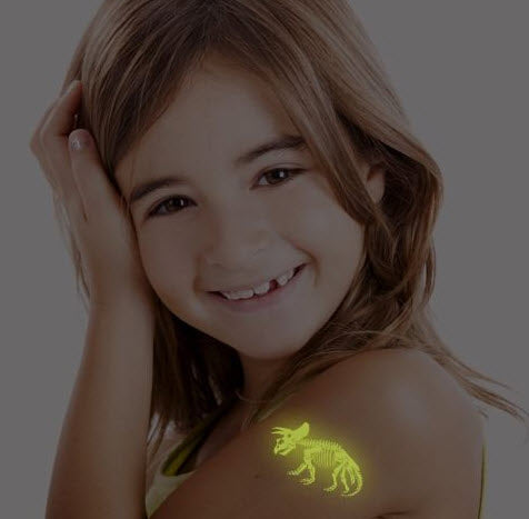 Tatuagem temporária de tricerátops dinossauro brilha no escuro